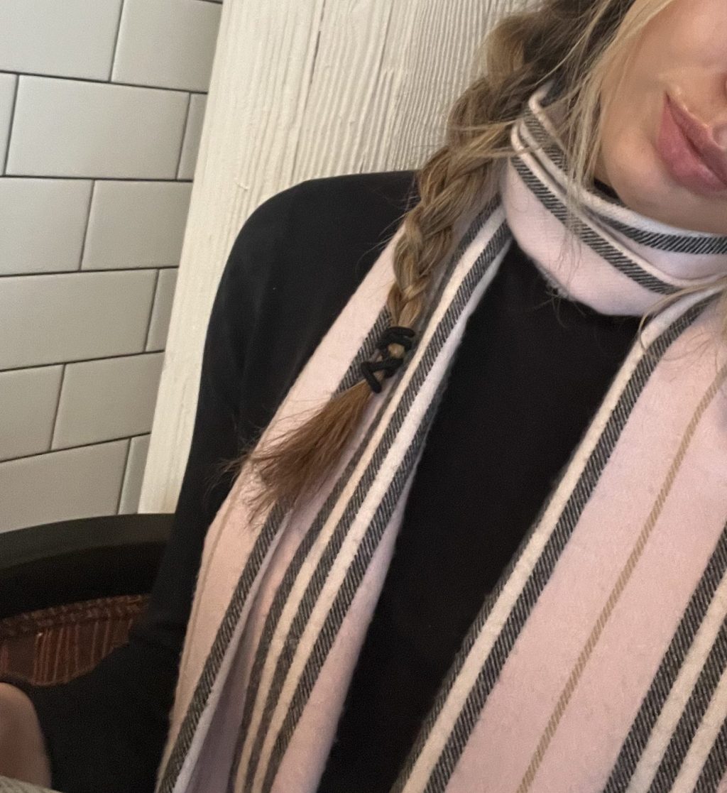 In this cold weather, wear a plaid wool scarf to any “timeless” outfit, and you will be warm and feeling more yourself!